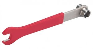 Kombinovaný montážní klíč s madlem na pedály 15mm  a k montáži a demontáži nábojů a klik - nástrčka 14–15mm na šrouby v klice, 4mm tloušťkaPogumovaná rukojeťDélka: 230 mm,Materiál: Fe železo o síle 4mmHmotnost: …
