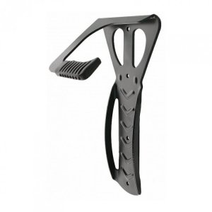- velmi stabilní nástěnný držák - barva: černá - včetně 3 šroubů a hmoždinek - pro zavěšení za přední kolo - s plastovou ochranou háku