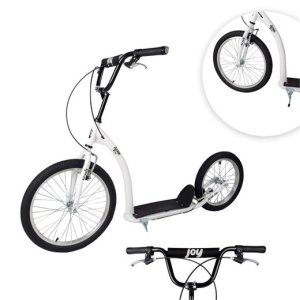 Koloběžka s nosností 100 kg, doporučená výška jezdce až 170 cm, pro děti od 12 let, přední kolo 20", zadní kolo 16", kvalitní odlehčená ocel, přední i zadní V-Brzdy, gumové rukojeti.