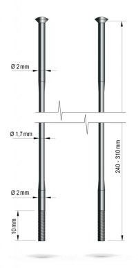 Kvalitní nerezový paprsekProvedení hlavičky: s přímou hlavou Rozměr paprsku: 2/1,7/2 mm, hmotnost: 4,9 g (při délce L = 260 mm)Materiál: vysoce pevnostní nerezová ocel SANDVIK T302Použití: MTB, Trekking, …