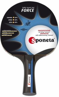 Pálka na stolní tenis, ideální pro lepší rekreační hráče, spin 40 %, rychlost 50 %, kontrola 85 %, mechový potah s výškou 1,5 mm, pohodlné držení.