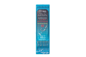 Perfektně vázané method feederové montáže s použitím silných a spolehlivých háčků Carp Method vázaných na 4”/10 cm monofilu.
