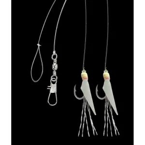 Mořský návazec se dvěma háčky velikost 6 potaženými pravou rybí kůží v přírodní barvě natural.