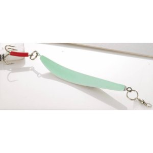 Bezolovnatý pilker. Tvar těla způsobuje při klesání silné, tlakové vlny a dráždí tím ryby k útoku.