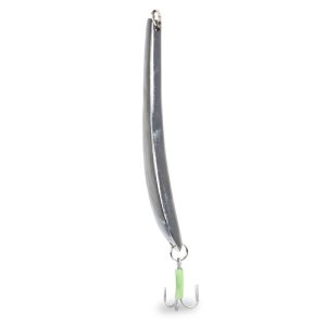 Bezolovnatý pilker. Tvar těla způsobuje při klesání silné, tlakové vlny a dráždí tím ryby k útoku.