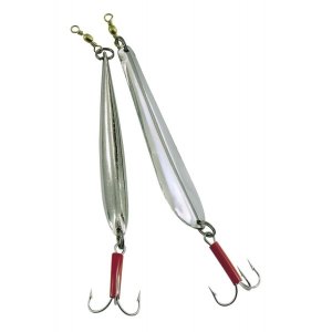 Bezolovnatý pilker. Tvar těla způsobuje při klesání silné, tlakové vlny a dráždí tím ryby k útoku.
