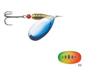 Rotační třpytka se širokým oválným listem, často používaná při lovu na dlouhé vzdálenosti.