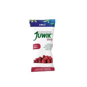 Ochranný nápoj Juwik Ovo s příchutí maliny, doplněk stravy s cukrem, sladidlem a s obsahem vitaminu C, E a jod a quercetin, taurin, cholin a fosfor V každém sáčku najdete směs s ovocnou příchutí pro …