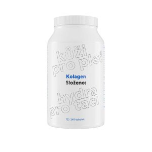 Doplněk stravy v kapslích obsahující kolagen, kyselinu hyaluronovou, vitamíny a aminokyseliny.