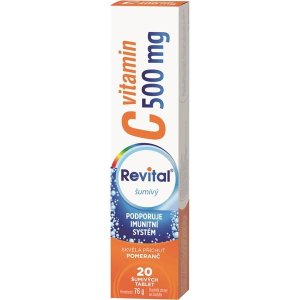 Revital C vitamin 500 mg Posiluje imunitní systém vysokou dávkou vitaminu C (500 mg) v šumivých tabletách se skvělou příchutí pomeranče Balení obsahuje 20 tablet