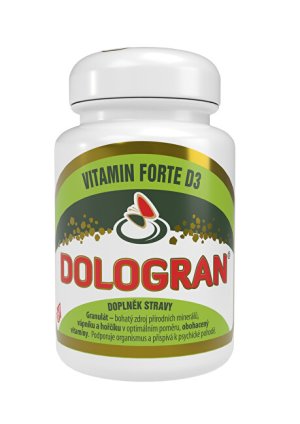 Dologran Vitamin FORTE D3 obsahuje optimální kombinaci minerálů a vitamínů, jako jsou B1 (thiamin), B6 (pyridoxin), vitamin E, beta-karoten a Acerola.