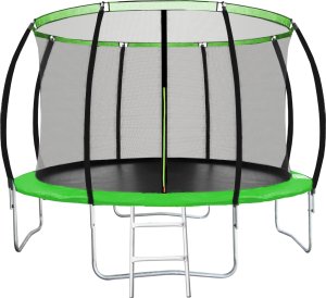 Skákací trampolína Marimex, výborná stabilita, vnitřní ochranná síť, přezky pro zajištění vstupního prostoru, schůdky k trampolíně součástí balení.