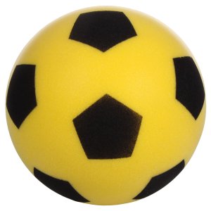 Pěnový fotbalový míč s průměrem 21 cm pro indoor i outdoor použití.