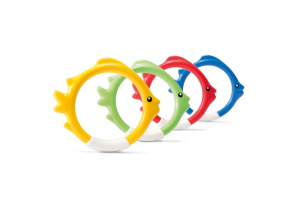 Sada 4ks barevných kroužků na potápění. po vhození do vody se ponoří ke dnu na dně bazénu zůstávají v kolmé poloze vhodné pro zpestření plaveckého a potápěčského výcviku nebo využití v domácím bazénu …