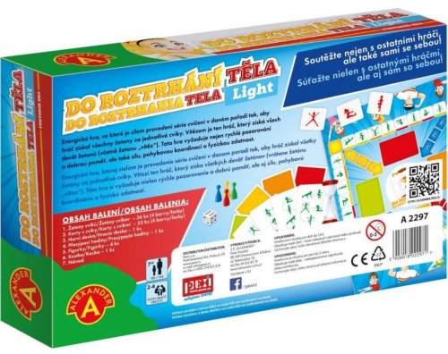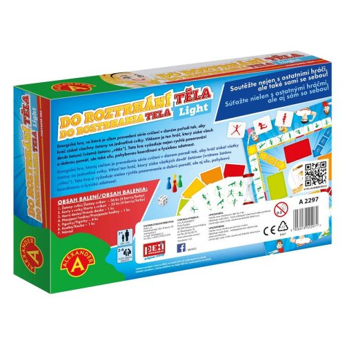 Balení obsahuje: Žetony cviků do skládačky – 36 ks (9 ks x 4 barvy), Karty s cviky – 55 ks (4 barvy), Hrací plán – 1 ks, Přesýpací hodiny – 1 ks, Barevné figurky – 4 ks, Hrací kostka – 1 ks, Český a slovenský návod - 1 ks