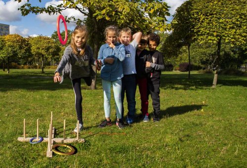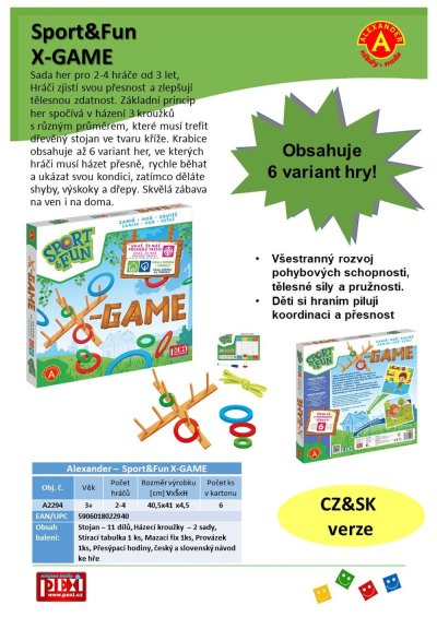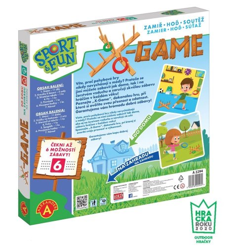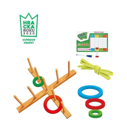 Sportovní hry a aktivity, ve kterých poznáš svou přesnost a zlepšuješ tělesnou zdatnost. Základní princip her spočívá v házení 3 kroužků s různým průměrem, které musí trefit dřevěný stojan ve tvaru kříže. Počet získaných bodů závisí jak na velikosti kroužku, tak na místě na stojanu, které jsi zasáhl. Krabice obsahuje až 6 variant her, ve kterých musíte nejen házet přesně, ale také rychle běhat a ukázat svou kondici, zatímco děláte shyby, výskoky a dřepy; nebo si můžete vyzkoušet pohybové casino.