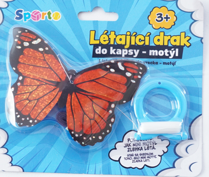 Malý létající drak ve tvaru motýla. Ideální na výlety. Schováš ho do kapsy a už jenom čekáš až bude vítr. Jednoduché pouštění. Krásné létá.