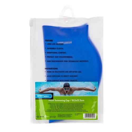 Čepice plavecká SPORTWELL slouží k ochraně vlasů před namočením. Je vyrobena ze silikonu. Výběr ze dvou barev: modrá a bílá.