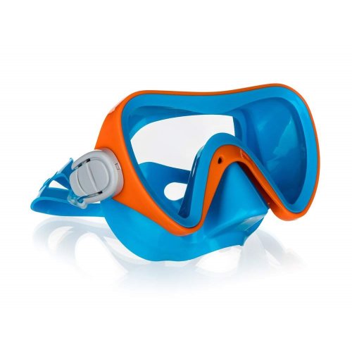 Maska potápěčská dětská SPORTWELL je skvělou pomůckou pro výuku plavání i zábavu ve vodě. Nedělený zorník masky je z polykarbonátového skla a lícní maska a popruh z PVC. Barva modrá s oranžovým rámečkem.