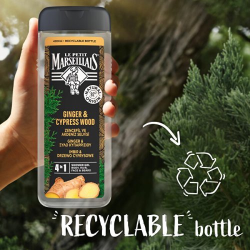 Potřebujete ranní dávku energie? Vyzkoušejte sprchový gel 4 v 1 se svěží vůní zázvoru a cypřiše, který probudí vaše smysly a zároveň pečuje o pokožku. Jeho jemná, lehce smývatelná pěna zajišťuje pocit čistoty a dlouhotrvající hydrataci. Obsahuje 92 % ingrediencí přírodního původu a jeho složení je z 98 % biologicky odbouratelné. Má pH šetrné k pokožce, recyklovatelný obal a je dermatologicky testovaný.