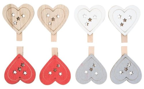 komponenty ke zdobení Srdce dřevěné na kolíčku 4,5 cm 8 ks