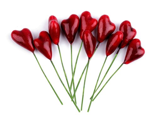 Dekorační srdíčka jsou připevněná k ohebnému floristickému drátku. Vyniknou zakomponovaná v květinových vazbách, aranžmá, věncích, ve svatebních či valentýnských dekoracích apod.