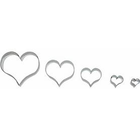 Sada 5ti vykrajovátek ve tvaru prohnutého srdíčka z pocínovaného plechu.