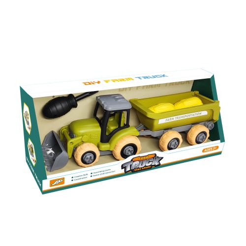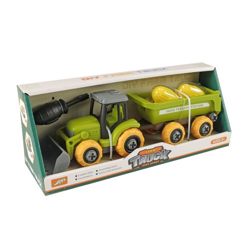 Šroubovací traktor s vlečkou, který se dá pomocí přiloženého dětského šroubováku snadno rozložit a zase složit. Rozvíjí technickou zručnost a kreativní myšlení. Traktor je vyroben z kvalitního plastu a jeho délka včetně přívěsu je cca 27 cm.