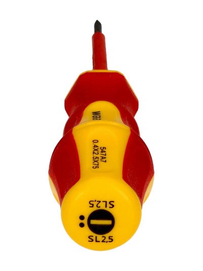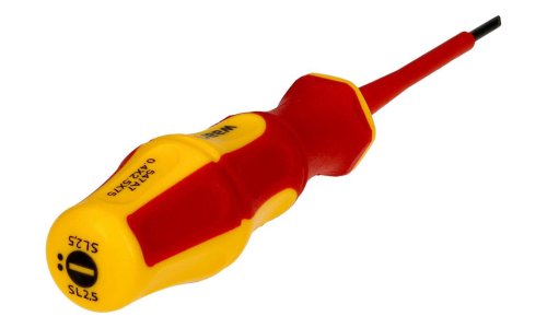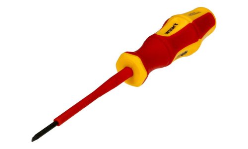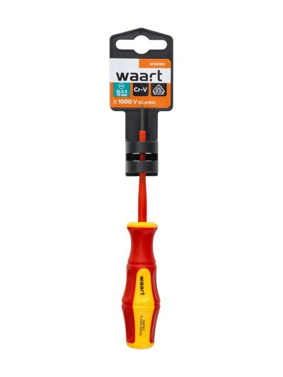 Šroubovák je vyroben z kvalitní CrV oceli, což zaručuje jeho pevnost a odolnost. Díky VDE certifikaci je zajištěno bezpečné použití při práci na elektrických zařízeních do 1000 V (1 kV). Plochý izolovaný šroubovák. Tento plochý elektrotechnický šroubovák je nástroj s plochou čepelí určený pro práci s elektrickými součástmi. Plochá čepel se používá k manipulaci a utahování šroubů s drážkovými otvory, tedy plochých šroubů. Šroubovák je vybaven izolovanou rukojetí z materiálu, který zajišťuje elektrickou izolaci a chrání uživatele před úrazem elektrickým proudem, přičemž umožňuje bezpečné uchopení. Elektrické šroubováky se široce používají při práci s různými elektrickými komponenty, jako jsou elektrické zásuvky, spínače, desky plošných spojů, kabely a další podobné součásti.