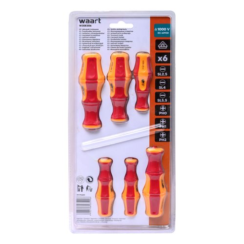Použití v domácnosti, dílně, montážní práce pro pohodlné a bezpečné šroubování, pro utahování a povolování šroubů na elektrických instalacích a na elektrických zařízeních do 1000 V. Certifikováno: VDE, 1000 V IEC60900. Šestidílná sada izolovaných šroubováků má rukojeť s certifikací VDE, která zajišťuje izolaci až do 1000 V. Šroubováky se osvědčí při práci na zařízeních, která vedou elektrický proud. Nízká hmotnost a ergonomický design rukojetí šroubováků umožňují pohodlnou a bezpečnou práci.