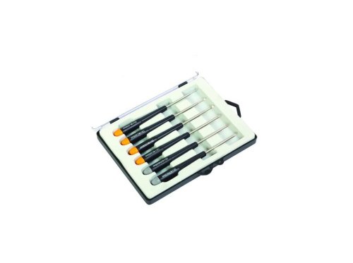Šroubováky jemné - (ploché a PH) sada 6ks v plastovém organizéru. Materiály: CrV, magnetická koncovka Sada obsahuje: - 1.5 2.0 2.5 x 50 mm, PH 000x50 mm, PH 00x50 mm, PH 0x50 mm
