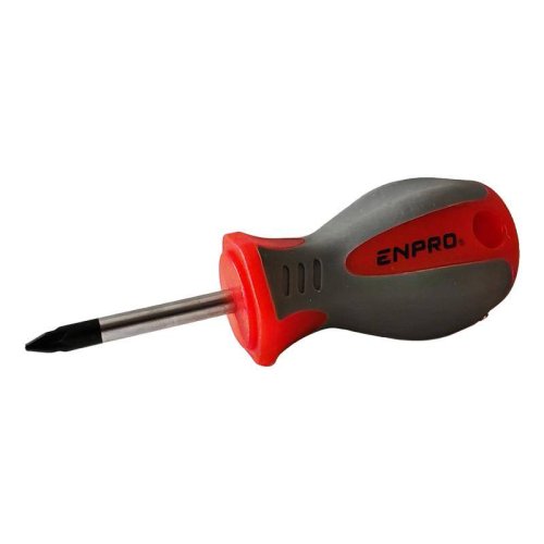 šroubovák křížový PZ krátký ENPRO kovový dřík vyroben z velmi kvalitní oceli S2 kalený hrot je magnetický ergonomická dvoukomponentní měkčená rukojeť z TPR gumy otvor pro páku