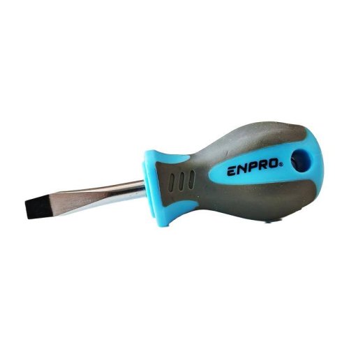 šroubovák plochý krátký ENPRO kovový dřík vyroben z velmi kvalitní chromvanadiové oceli kalený hrot je magnetický a povrchově chráněn tvrdochromem ergonomicky tvarovaná rukojeť (kombinace polypropylenu …