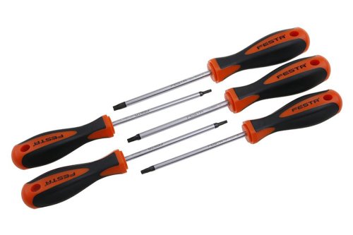 Sada šroubováků TORX FESTA S2 5díl. materiál: molybdenová ocel S2, kalený hrot magnetický, chráněný tvrdochromem, výborné antiskluzové vlastnosti rukojeti a odolnost vůči mazadlům a chemikáliím zaručuje …