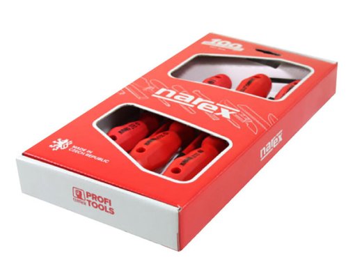 Řada PROFI LINE ELEKTRO SLIM - šroubováky ploché + Phillips + zkoušečka napětí. Určeno pro práci pod napětím v elektrotechnických oborech. Šroubováky splňují požadavky EN 60900:2004 (IEC 60900:2004). Každý šroubovák je zkoušen na průraz elektrickým proudem ve vodní lázni při napětí 10 000 V. Je zaručena bezpečná práce až do napětí 1 000 V.