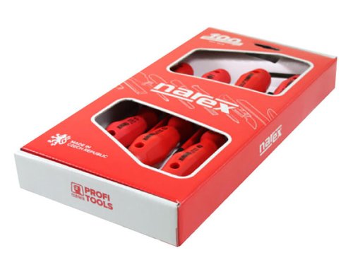 Řada PROFI LINE ELEKTRO SLIM - šroubováky ploché + Phillips. Určeno pro práci pod napětím v elektrotechnických oborech. Šroubováky splňují požadavky EN 60900:2004 (IEC 60900:2004). Každý šroubovák je zkoušen na průraz elektrickým proudem ve vodní lázni při napětí 10 000 V. Je zaručena bezpečná práce až do napětí 1 000 V.
