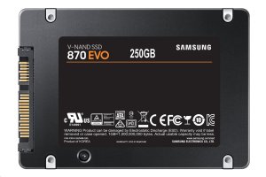 SSD disk Samsung 870 EVO s kapacitou 500 GB a rozhraním SATA 6 Gb/s osahuje maximálních přenosových rychlostí až 560 MB/s při čtení a 530 MB/s při zápisu dat.