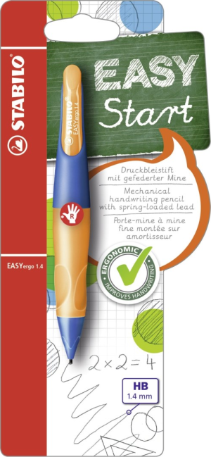 Grafitová tužka STABILO EASYergo je speciálně určená pro školáky, kteří jsou v psaní již pokročilejší. Je ergonomicky tvarovaná a opatřená příjemnou úchopovou zónou vyrobenou z neklouzavého materiálu, která odpovídá velikosti dětské ruky a intuitivně ji navádí ke správnému úchopu . Na psaní a kreslení je tak zapotřebí vyvíjet jen minimální tlak. Tužka disponuje také stiskacím mechanismem a odpruženou špičkou. Tuha o tvrdosti HB vytváří stopu o šířce 1,4 mm a není ji nutné ořezávat. STABILO EASYergo umožní dětem skutečně pohodlné psaní.