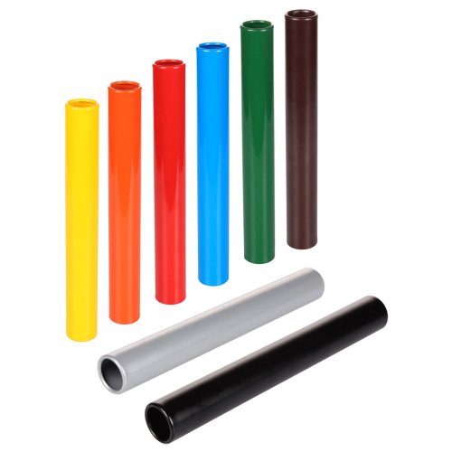Štafetové kolíky Merco vhodné na trénink. Jsou vyrobené z lehkého eloxovaného hliníku s oblými hranami. Jedná se o seniorské provedení, které nabízíme v osmibarevném setu. Jeden kolík má délku 30 cm, průměr 38 mm a hmotnost přibližně 78 g.