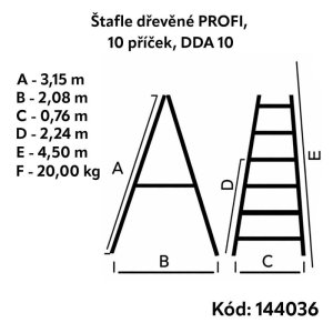 Štafle dřevěné PROFI, 10 příček, L = 315 cm, ENPRO