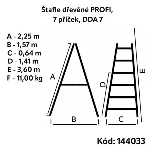 Štafle dřevěné PROFI, 7 příček, L = 225 cm, ENPRO