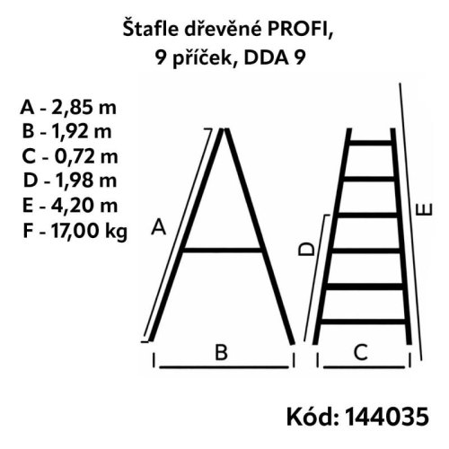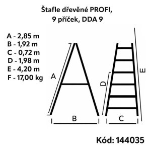 Štafle dřevěné PROFI, 9 příček, L = 285 cm, ENPRO