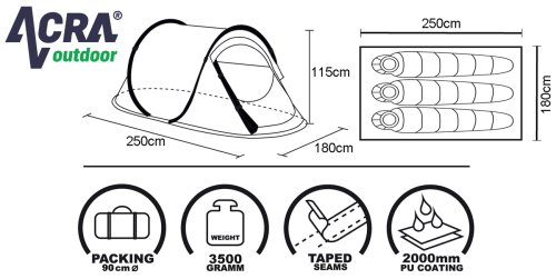 Vezměte samostavěcí stan Acra BROTHER ST01 a vydejte se kempovat. Pohodlně se v něm vyspí až 3 osoby. Snadno ho přibalíte na cestu, jelikož je skladný. Pokud plánujete jet autem, nezabere příliš místa ve vašem kufru. Největší výhodou stanu je ovšem to, že se v podstatě postaví úplně sám. Stačí, abyste vyndali stan z obalu. Ulehčí vám práci a vy poté jen upevníte kolíky k zemi a dopnete plášť stanu kotvícími šňůrami kolem dokola. Během chvilky máte své dočasné útočiště postavené. Návod najdete v balení.