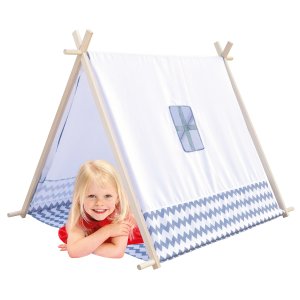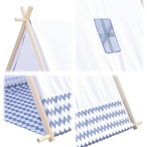 Dětský stan na hraní. Obsahuje vzdušné okénko, otevřený závěs dveří a podlahu. Plachta domečku je vyrobena ze 100% polyesteru a konstrukce ze dřeva. Stan přináší do života dětí spoustu zábavy, zkoumání, vytváření skrýší ve vlastní ,,jeskyni‘‘.