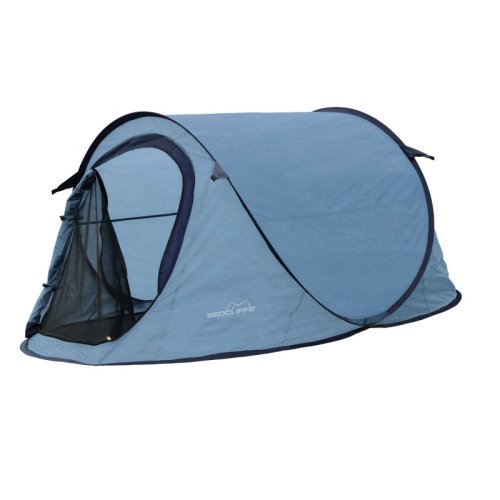 stan pop up v modré barvě, rozměr 220x120x95cm, 190t polyester s pu zátěrem 2000mm, pe podlážka 100g/m2 v matné černé barvě, pevné tyče ze skleněných vláken 5,0mm, se 4x šňůrami na zavěšení a 4x stanovými …