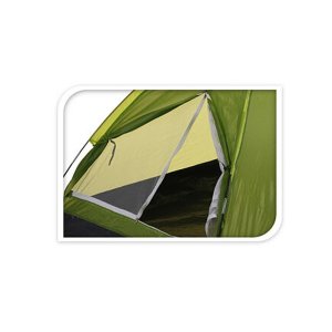 jednoplášťový kopulovitý stan, rozměry 200x120x100cm, (uvnitř 195x115xh90cm) z polyesteru 170t s pu zátěrem 400mm, vodní sloupec, podlážka 10x10/100gr/m2, 2x sklolaminátové tyče prům. 7,0mm, nárazové šňůry, 8 stanových kolíků a 4 lana, zelená barva