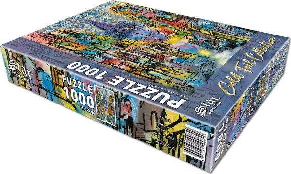 Metalické puzzle má speciální povrch, který se na světle z různých úhlů kovově leskne a vytváří tak dojem, že je puzzle ze zlata. Rozměr složeného puzzle cca 48 x 68 cm