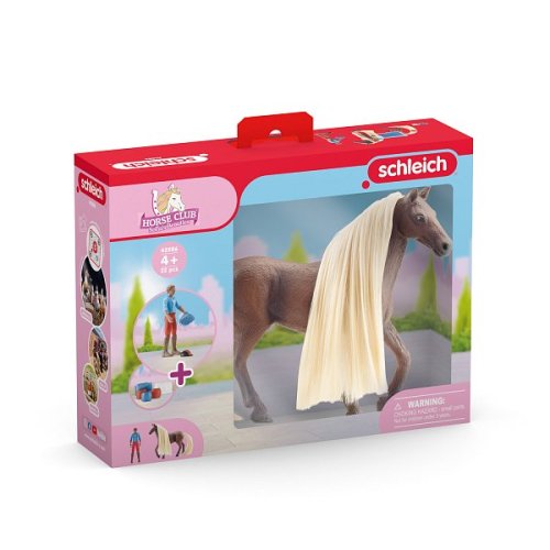 A první místo získávááááá… Leo a Rocky ze startovací sady Schleich® HORSE CLUB Sofia's Beauties. Takové oznámení z uslyšíš z reproduktorů poměrně často. Není divu, protože plně pohyblivá figurka Lea a jeho koně plemene Rocky Mountain s kartáčovatelnou hřívou jsou pravým vítězným týmem. Nejen z drezúry, ale i ze skoků přes překážky si obvykle přivezou domů zlato. Díky tvojí pomoci také rádi trénují na těch nejhrbolatějších tratích a skáčou ze země na zadní sedadlo. Hřebec se hrdě rozkročí nad stolem a předvede svou hřívu. Rychle, je čas připravit se na předávání cen! To ale není nejmenší problém, protože hřívu a ocas můžeš snadno a rychle vyměnit. Pak už stačí jen narovnat barevné sponky a korálky do hřívy… a slavnostní předávání cen může začít. Sada obsahuje: 1× kůň plemene Rocky Mountain s kartáčovatelnou hřívou a ocasem, 1× plně pohyblivá figurka Lea, 1× deka pro koně, 1× jezdecký klobouk, 1× sponky do hřívy, 1× korálky do hřívy, 1× příčesek, 1× kartáč. Rozměry: 18,7 x 24,5 x 6 cm Věk: 3+
