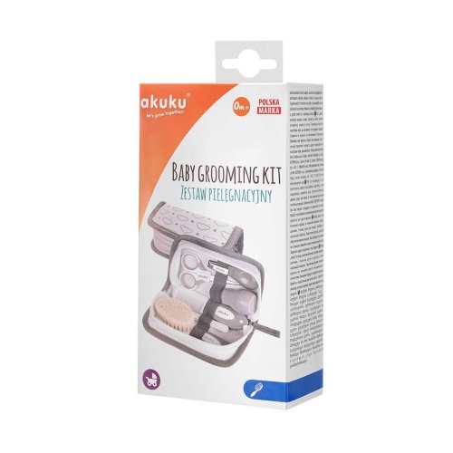 Nůžky (s tenkými kovovými čepelemi a zaoblenými hranami) a kleštičky na nehty pomáhají bezpečně a spolehlivě stříhat nehty a pilník na nehty snadno odstraní nerovnosti a chrání dítě před poškrábáním. O hlavičku vašeho dítěte se postará kartáč s měkkými přírodními štětinami a hřeben s protiskluzovou rukojetí. Nosní odsávačka s měkkou špičkou je navržena tak, aby uvolnila dýchací cesty a maz z uší dítěte.