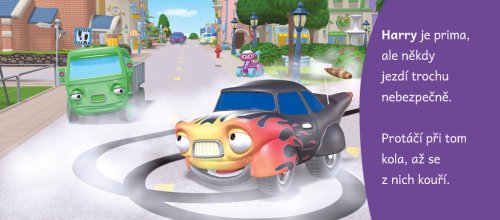 Autíčko Harry je známý výtržník. Rád jezdí rychle, zkouší nebezpečné smyky a používá silné výrazy. Je zbrklý a často sám sebe vytrestá svou unáhleností a nepromyšleným jednáním. Hluboko uvnitř je laskavý a přátelský, ale chce vypadat jako drsný rebel. Důvod, proč se tak předvádí, je ten, že se neustále pokouší okouzlit motorku Terku…